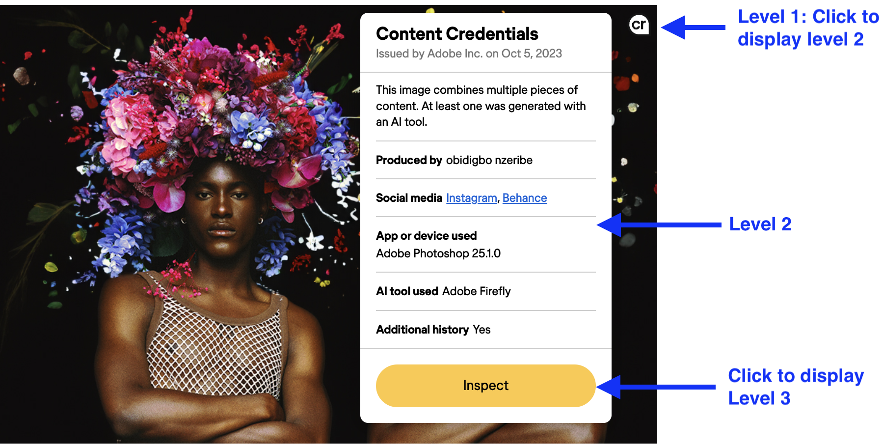 shown over the image indicates that the image has Content Credentials (level 1).